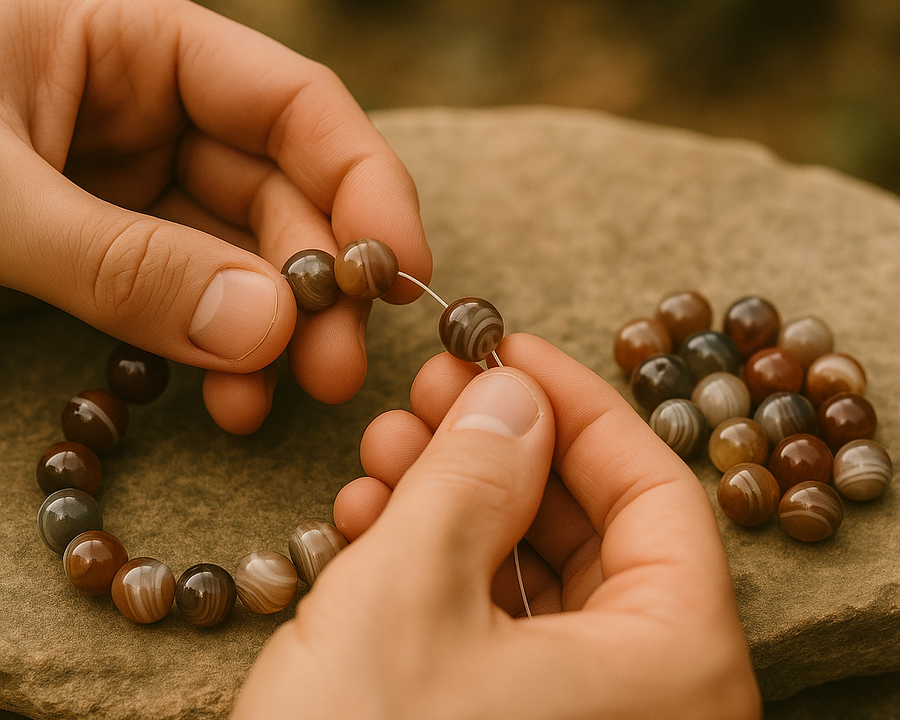 On le sait : les bracelets élastiques classiques finissent par casser. On est passé par là aussi. Alors on a cherché, testé, amélioré… pour proposer aujourd’hui un montage plus fiable, qui tient dans le temps.