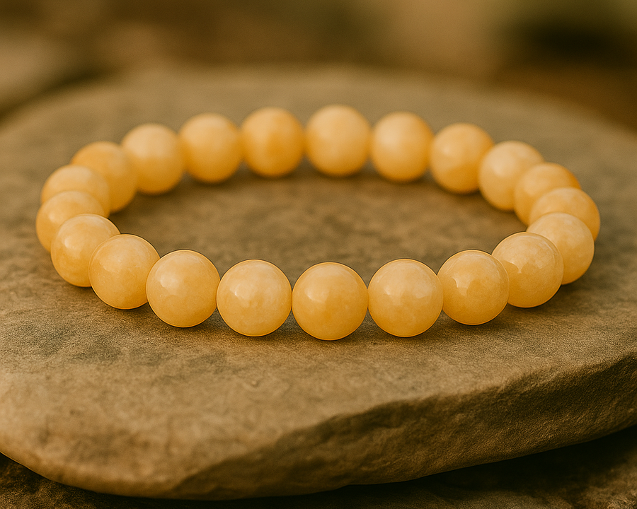 La calcite orange, avec sa teinte lumineuse et chaleureuse, rayonne d’une énergie douce mais tonifiante. En bracelet, elle apporte une note vibrante au poignet, comme une étincelle de soleil à emporter partout. Sa couleur évoque à la fois l’enfance, l’élan créatif et la légèreté retrouvée.
