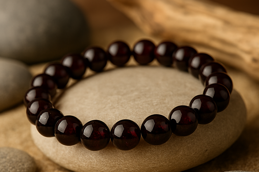 Le grenat est une pierre d’un rouge profond et dense, symbole d’ancrage et de feu intérieur. En bracelet, il dégage une présence forte et élégante, souvent associée à la détermination et à la volonté de dépasser ses limites. C’est une pierre que l’on porte pour raviver sa flamme intérieure, traverser les défis avec courage et rester connecté à ses désirs profonds.
