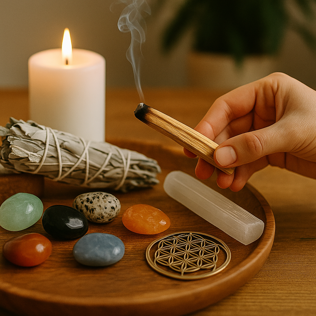 - Palo Santo : bois sacré utilisé pour purifier les espaces et chasser les énergies stagnantes.