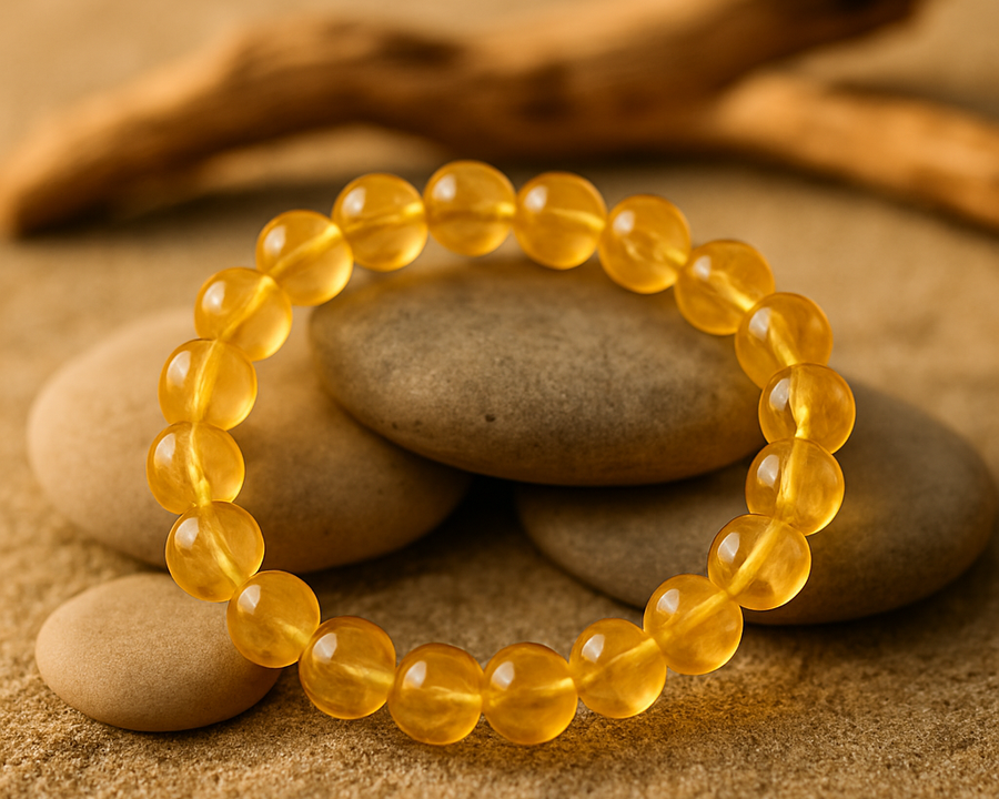 La citrine est une pierre rayonnante, aux nuances allant du jaune pâle au miel doré. Montée en bracelet, elle apporte une touche de lumière au poignet, avec une énergie solaire qui évoque la joie de vivre. C’est un bijou éclatant, à la fois élégant et dynamisant, parfait pour accompagner les journées avec optimisme.