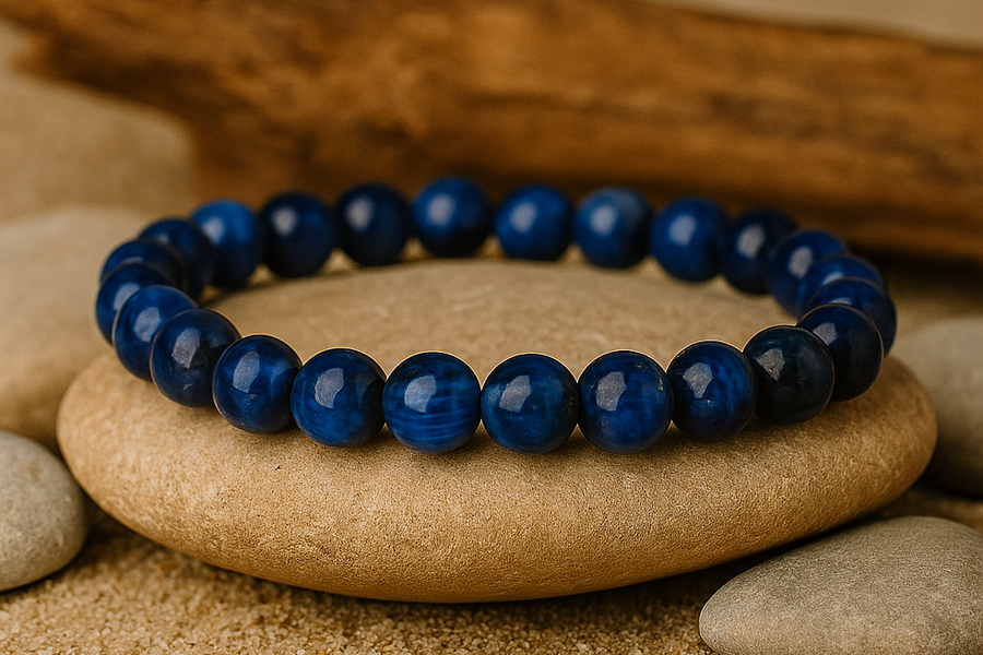 La cyanite se distingue par ses teintes bleues striées de lumière, évoquant un ciel traversé de vents paisibles. Montée en bracelet, elle offre un style à la fois raffiné et apaisant. C’est une pierre que l’on choisit pour se recentrer, clarifier ses pensées et retrouver une expression plus fluide. Elle accompagne ceux qui veulent mieux se faire entendre, tout en restant à l’écoute de leur intuition.