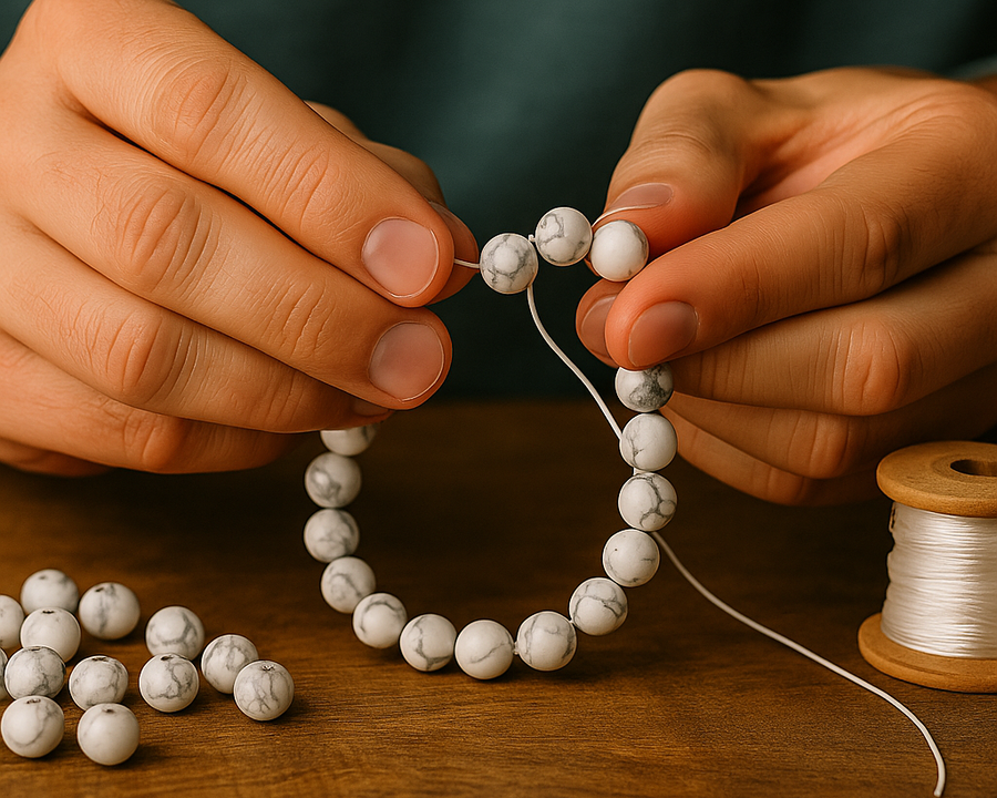 Tous nos bracelets en pierre sont montés sur un fil élastique multibrin haute résistance. On le sait : les bracelets élastiques classiques finissent par casser. On est passé par là aussi. Alors on a cherché, testé, amélioré… pour proposer aujourd’hui un montage plus fiable, qui tient dans le temps.